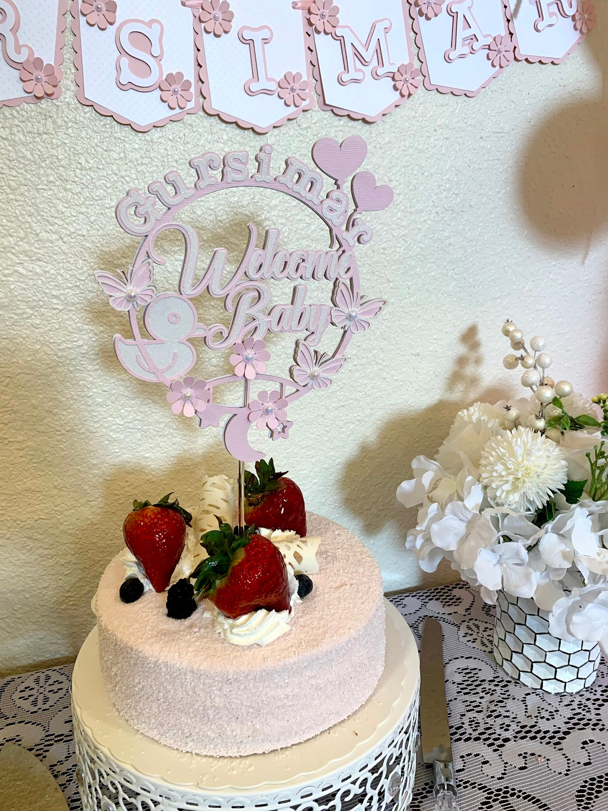 Custom butterflies and floral cake topper to welcome your bundle of joy.