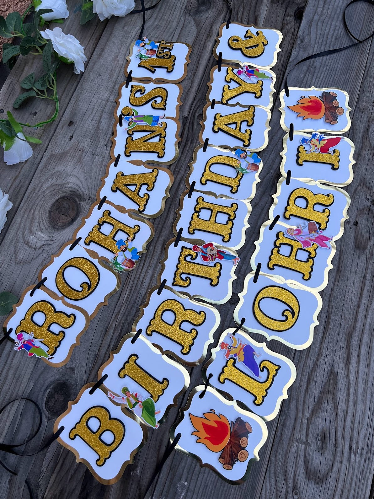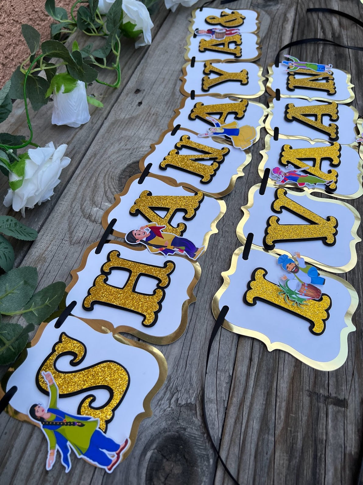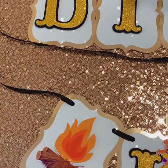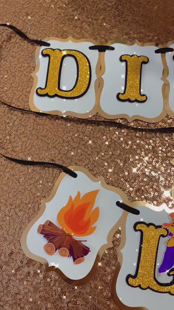 - The banner is made with mirror gold and white layers and embellished with Black/Glitter gold letter